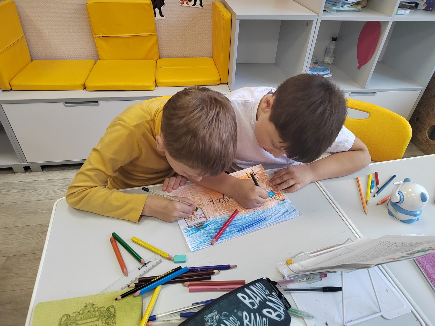 Дети поучаствовали в парной работе, где самым важным заданием было суметь договориться друг с другом, найти компромисс в случае разногласий и создать общую картину