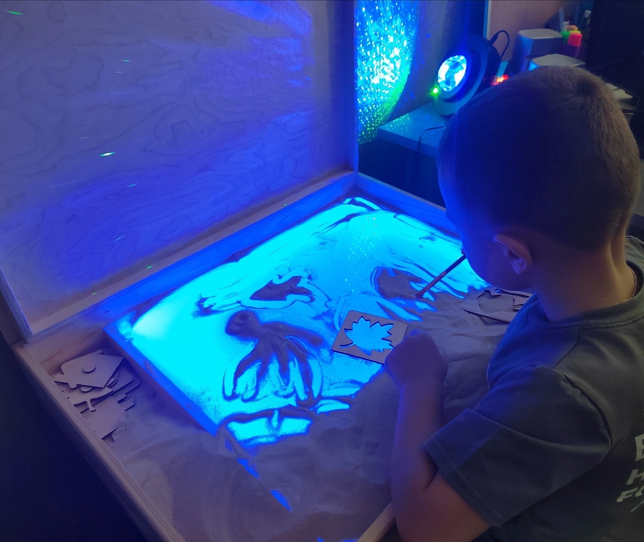 Один из супер инструментов для занятий - световой песочный стол. У него множество функций, но наиболее излюбленное детьми - это создание своего песочного мира.